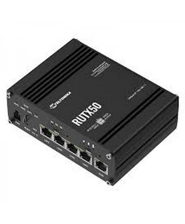 El RUTX50 es el router industrial insignia con tecnología 5G de próxima generación. Ofrece velocidades de descarga ultra-rápidas de hasta 3.3 Gbps, con soporte para arquitecturas SA (Standalone) y NSA (Non-Standalone). Es compatible con 4G LTE Cat 20, asegurando conectividad incluso en ausencia de redes 5G. Incluye 5 puertos Gigabit Ethernet y WiFi 5 de doble banda. Su capacidad de latencia ultra-baja lo hace perfecto para aplicaciones de Industria 4.0, telemetría en tiempo real y robótica. Con doble SIM y soporte para múltiples protocolos industriales y de seguridad, el RUTX50 está diseñado para futuras infraestructuras digitales que demandan el máximo ancho de banda disponible.